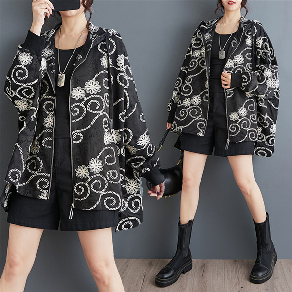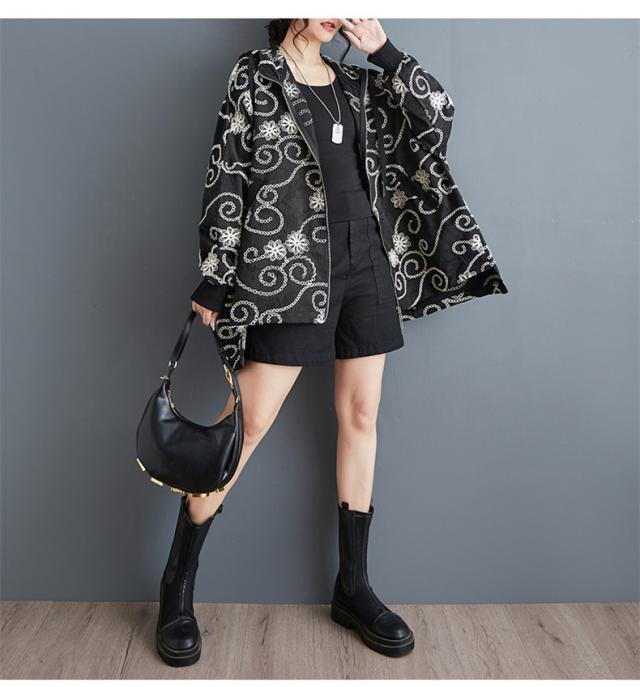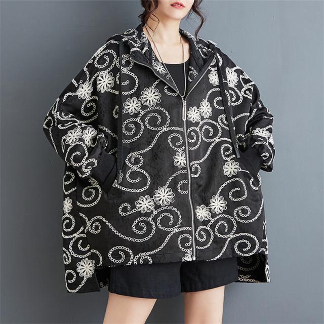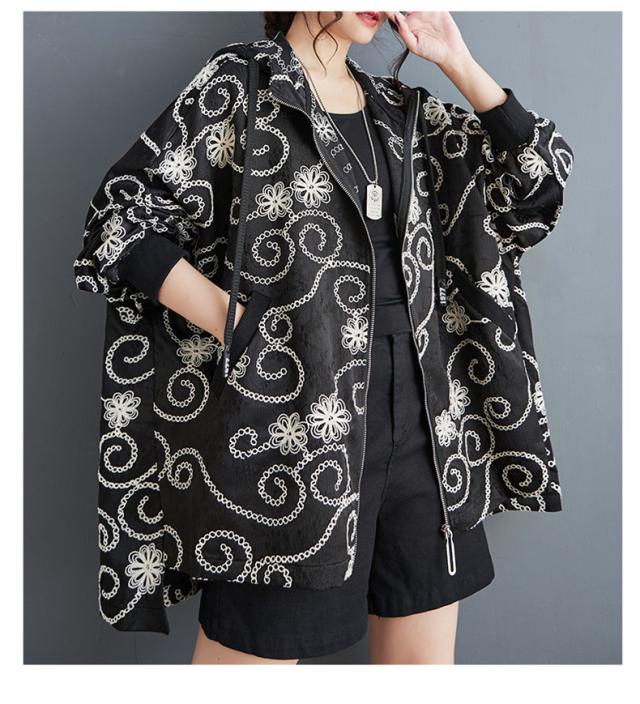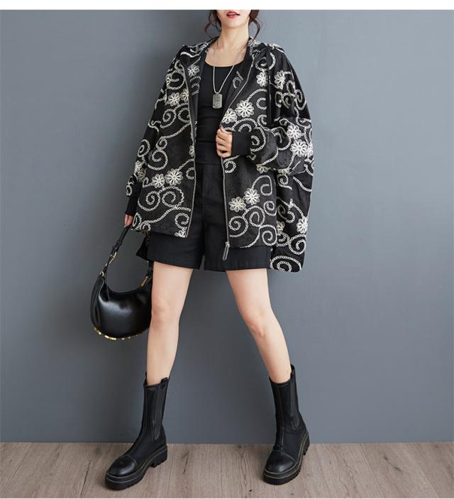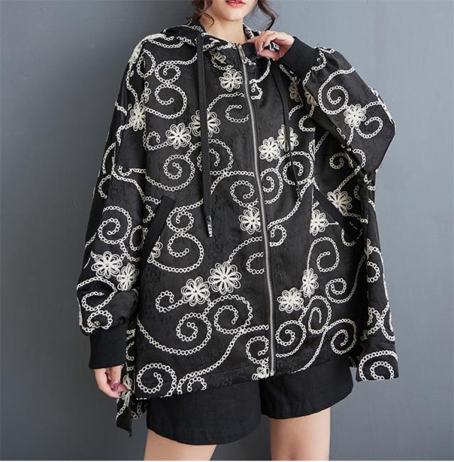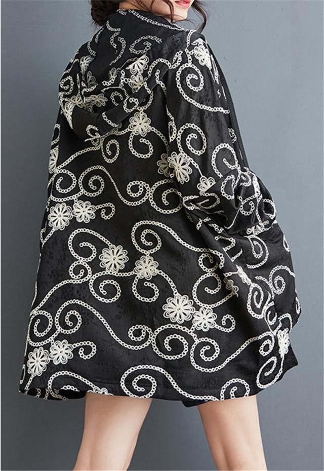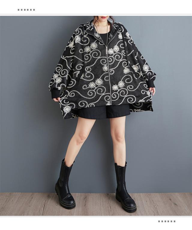 春秋アウター ジャケット レディース 刺繍 羽織り フード付き 華奢見え リラクシーな着心地も魅力的 程よいボリュームシルエット 大人可愛い リラクシー
