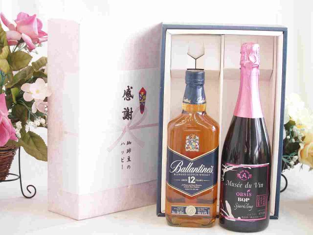 感謝の贈り物ボックスバランタイン12年ウイスキーと国産ワインセット(MdV オアシス ブラッククイーンピンクロゼスパークリングワイン辛口(長野県)750mlバランタイン 12年(スコットランド) 700ml