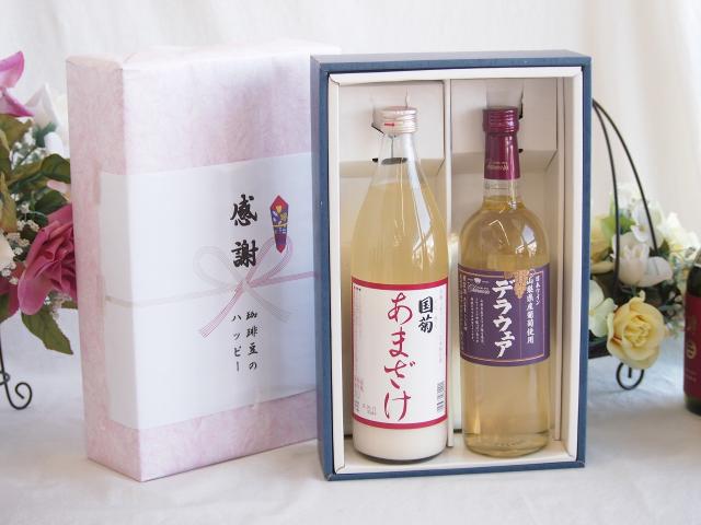 感謝の贈り物ボックス ノンアルコール甘酒と国産ワインセット(山梨県産葡萄使用 デラウエア白ワイン やや辛口(山梨県)720ml篠崎 国菊甘酒 あまざけ985g