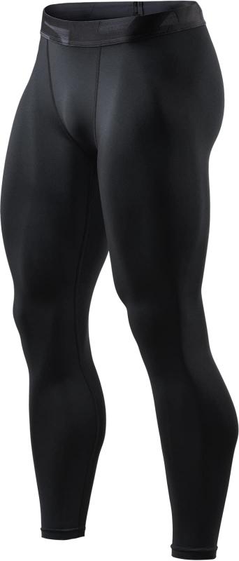 [テスラ] コンプレッションタイツ メンズ スポーツタイツ [伸縮性・UVカット・吸汗速乾] コンプレッションウェア ランニングウェア トレーニングウェア スポーツ タイツ スパッツ レギンス 大きいサイズ (L, ベーシック(MUP09)-オールブラック)
