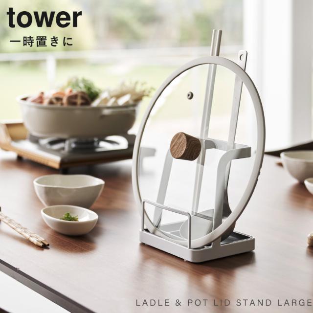 お玉&鍋ふたスタンド L タワー 山崎実業 tower 鍋蓋スタンド お玉 鍋蓋 スタンド 菜箸置き おしゃれ モノトーン ホワイト ブラック 1551 1552