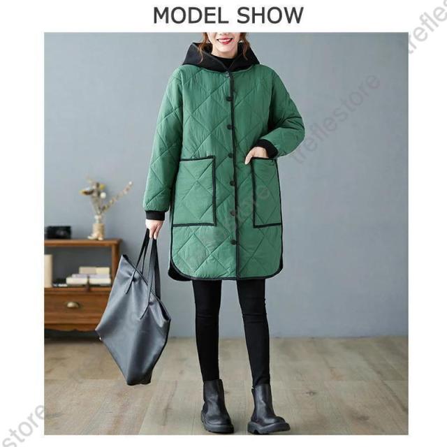 【ポイント5倍!】中綿コート キルティングコート コート レディース フード付き ロングコート キルティング 中綿 アウター 冬 無地 防寒 キルティング 軽量 暖かい