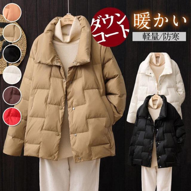 【ポイント5倍!】ダウンジャケット レディース 中綿コート 軽量 ショート丈 防寒 防風 保温 暖かい 秋冬 アウター ゆったり 着痩せ カジュアル通勤 オフィス