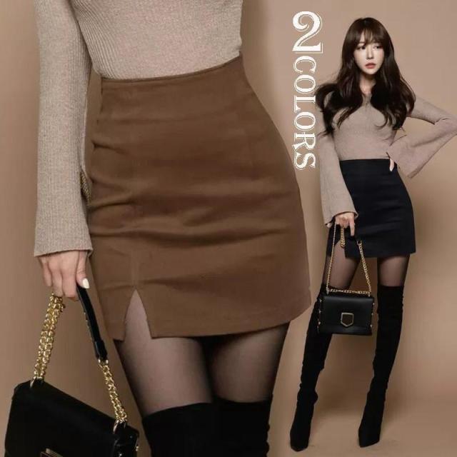 【ポイント5倍!】スカート ウール混 タイトスカート 秋冬 ボトムス レディース ペンシルスカート ミニ丈 スリット ハイウエスト 大人 上品 通勤 OL エレガント30代40代