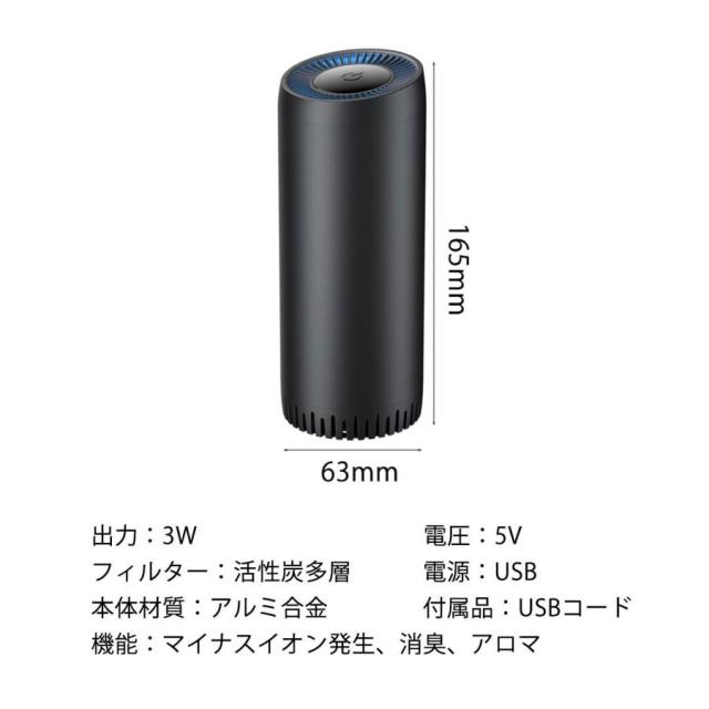 空気清浄機 車 USB 車用 車載 車内 小型 マイナスイオン 花粉 タバコ ほこり コンパクト