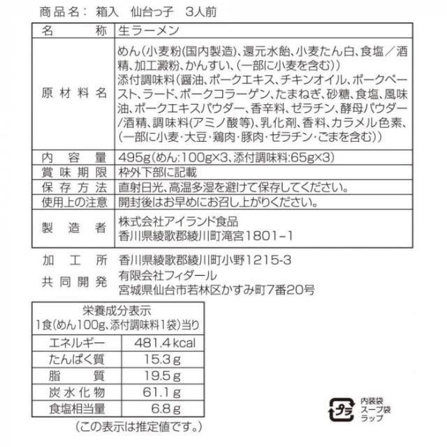箱入仙台仙台っ子 3食 20箱