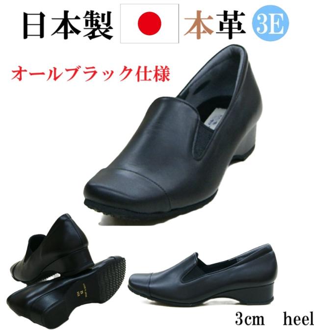 日本製 本革 レザーパンプス パンプス 幅広 3e 外反母趾 オールブラック仕様 フォーマル 冠婚葬祭 リクルート 入学式 卒業式 痛くない 歩きやすい 履きやすい