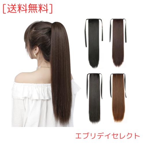 レディース ポニーテール ウィッグ つけ毛 ロング ストレート ヘア エクステ かつらナチュラル ポイントウィッグ 耐熱 45cm 55cm (ブラッ