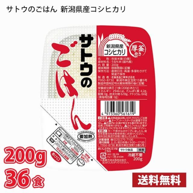 【期間限定特売】 サトウのごはん 新潟県産コシヒカリ 200gパック 36食 送料無料(北海道は別途700円かかります。沖縄配送不可) / ごはん パックご飯
