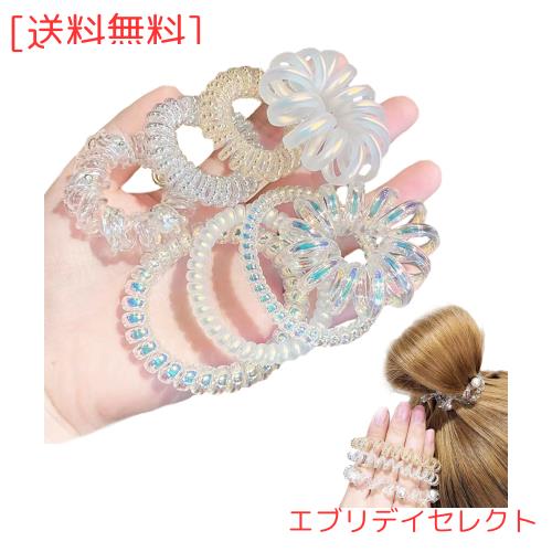 Aollaa【キラキラ8本Mix】ヘアゴム スプリングヘアゴム 透明感 跡がつかない 人気スパイラルヘアゴム 髪ゴム おしゃれヘアアクセサリー