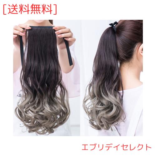 YJINCO グラデーションカラー エクステンション ポイントウィッグ ポニーテールウィッグ 巻き髪 リボン付き エクステ ロング カール 簡単