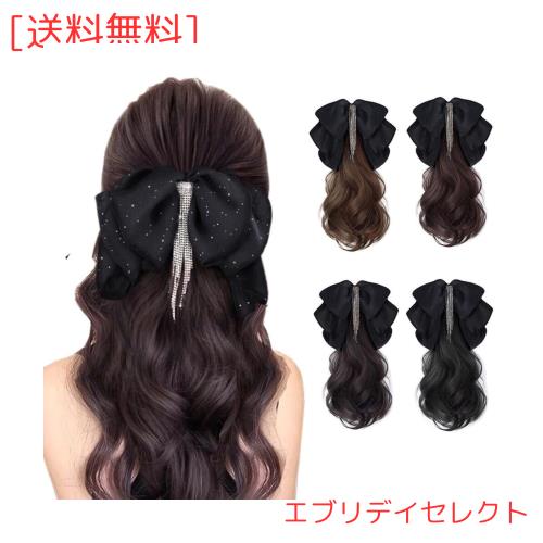 ELECTRO-WEIDEWORLD ポニーテールウィッグ リボンクリップ付き 付け髪 ポニーテール レ ディース ワンタッチエクステ ロング つけ毛 クリ
