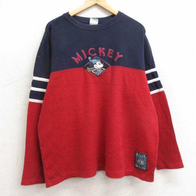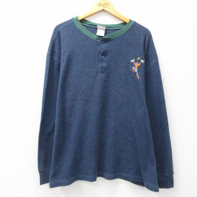 【商品名】 XL★古着 長袖 Tシャツ メンズ 00年代 00s ディズニー くまのプーさん イーヨー 刺繍 コットン クルーネック 紺