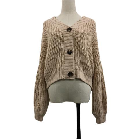 【中古】レイカズン Ray cassin カーディガン ニット Vネック 無地 長袖 F ピンク ベージュ レディース