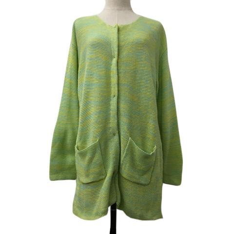 【中古】ロデオクラウンズワイドボウル RCWB カーディガン ニット ロング メランジ 無地 長袖 M 緑 黄 グリーン