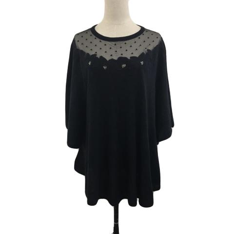 【中古】スナイデル セーター ニット ポンチョ風 切替 ドット アンゴラ混 刺繍 花柄 レース 透け感 七分袖 F 黒