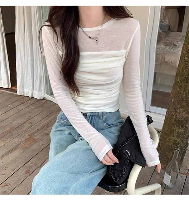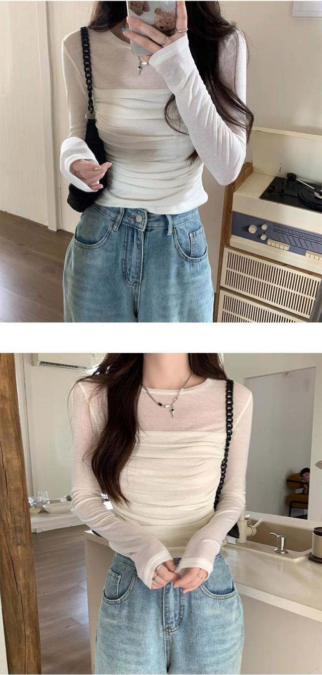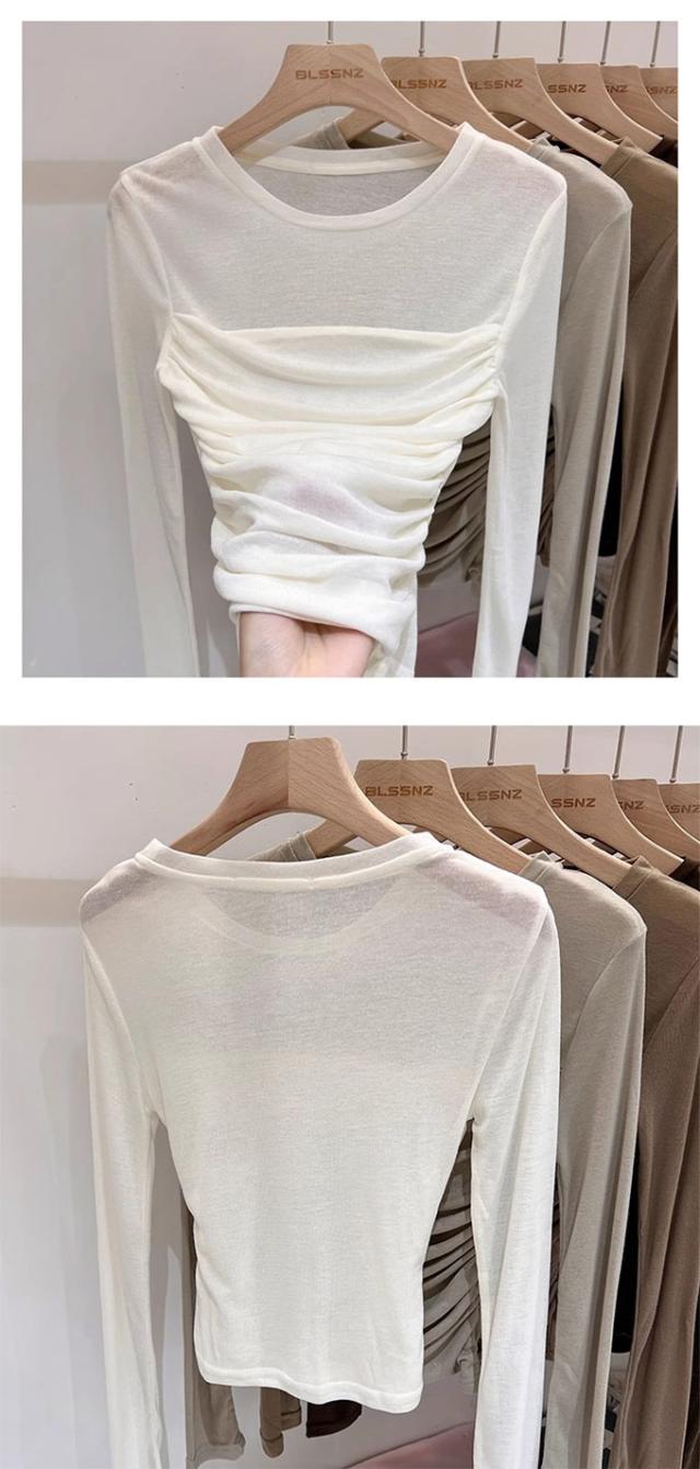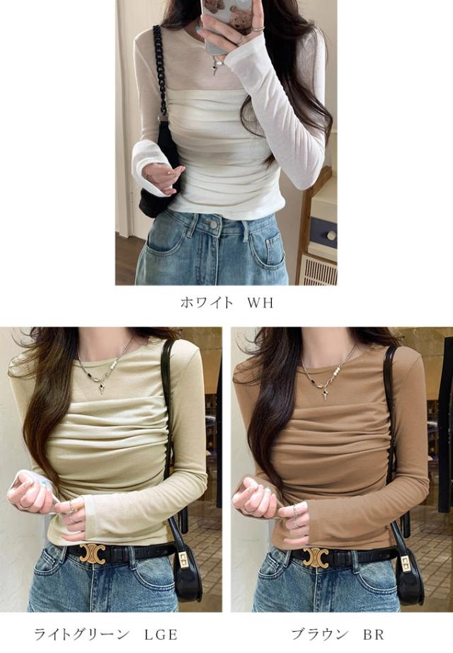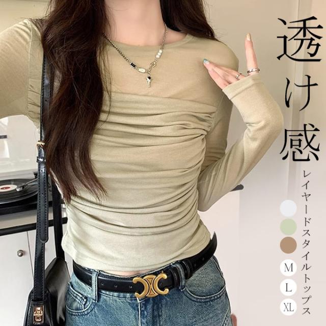 15%OFF、 1683円重ね着 透け感 トップス オフィス カットソー 長袖Tシャツ レディース シースルー トップス シアー インナー フリル 無地 おしゃれ 伸縮性 オフィスカジュアル セクシー エレガント
