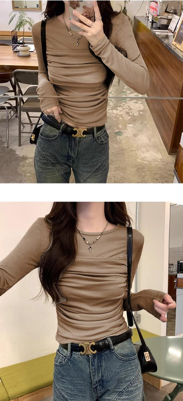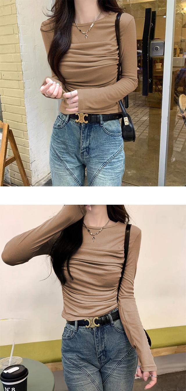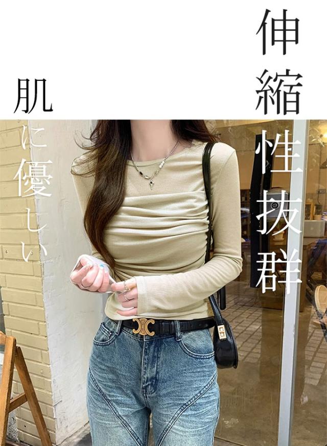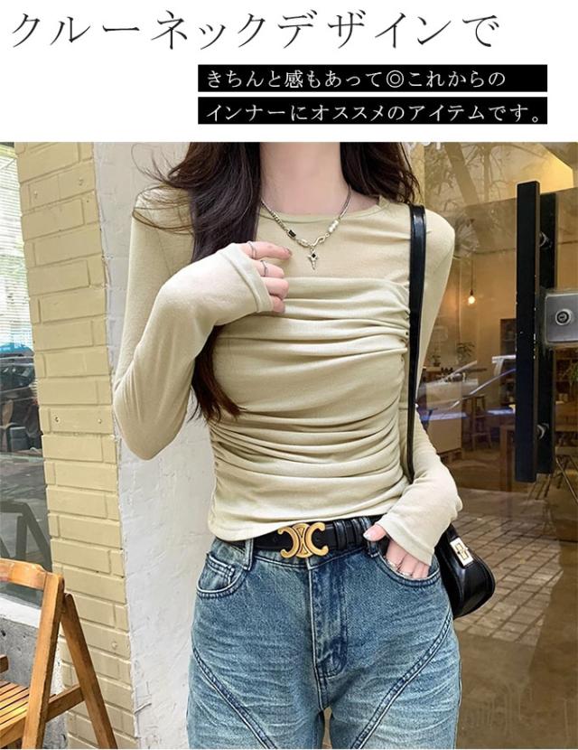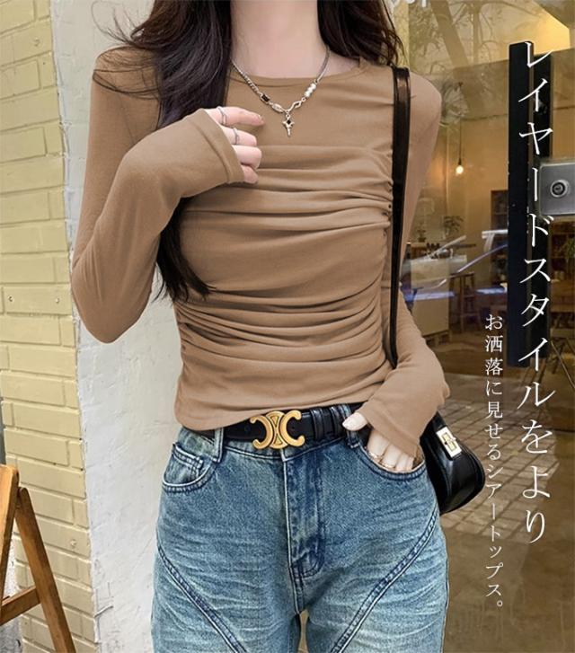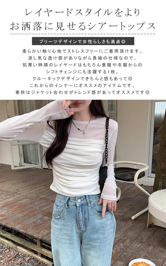 レイヤードスタイルをよりお洒落に見せるシアートップス。 プリーツデザインで女性らしさも満点◎柔らかい触り心地でストレスフリーにご着用頂けます。 涼し気な透け感がありながら長袖の仕様なので、 肌寒い時期のレイヤードはもちろん夏服や冬服からのシフトチェンジにも活躍する1枚。 クルーネックデザインできちんと感もあって◎これからのインナーにオススメのアイテムです。 春秋はジャケット合わせがトレンド感があってオススメです◎ ※モニター環境により多少色合いが異なりますので、予めご了承くださいませ |