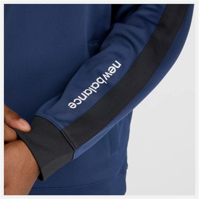 左胸のNBロゴ刺繍と左袖のNBリニアロゴ、サイドラインテープがデザインポイントです。