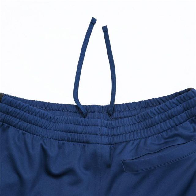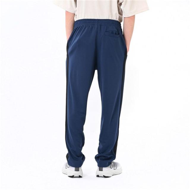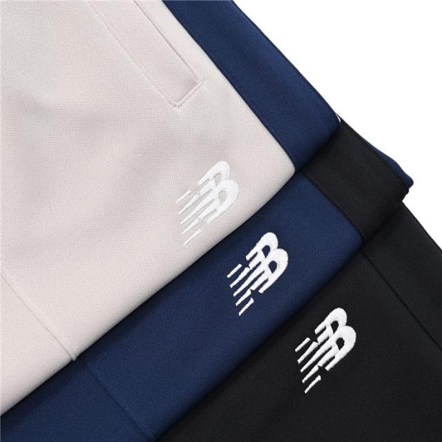 フロントのピンタック、左腿のNBロゴ刺繍、サイドラインテープがデザインポイントです。