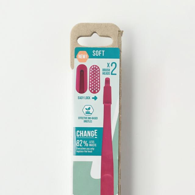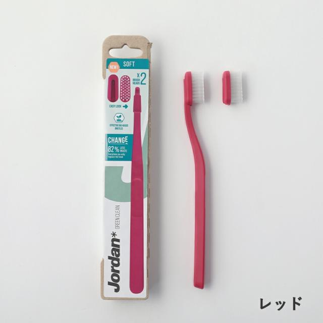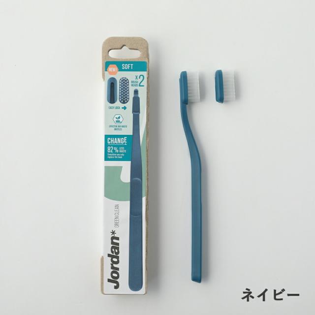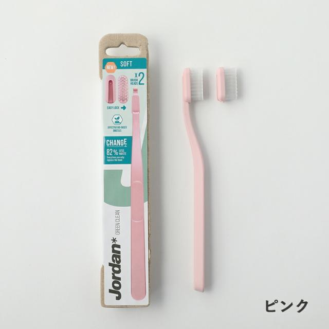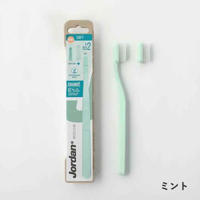 Jordan(ジョーダン)グリーンクリーン チェンジ 歯ブラシ 大人用 ヘッドブラシ2個入り やわらかめ 再生プラスチック 植物性プラスチック サスティナブル 再生資源 ts1031
