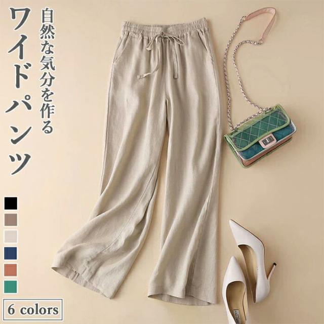 リネンパンツ リネン パンツ レディース 麻 麻生地 リネン混 ロング丈パンツ ワイドパンツ 十分丈パンツ 無地 ゴム お洒落 快適 カジュアル キレイめ 春 夏 秋 春新作
