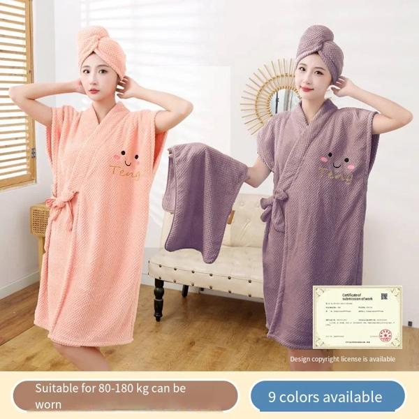女性用パイナップルチェックバスローブ、コーラルベルベットタオル、クロスバインディングシャワースカート、ドライヘアキャップ、厚手のバスタオル、新しい