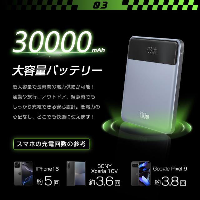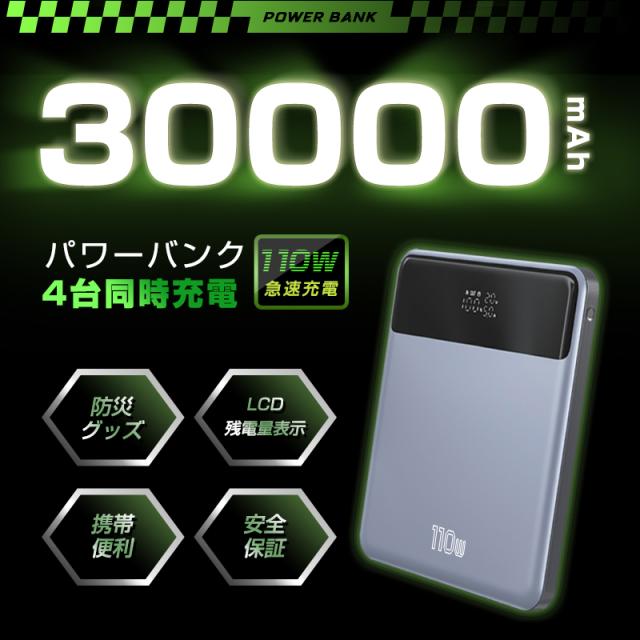 モバイルバッテリー 2026年新開発 30000mAh大容量 4台同時充電 薄型 スリム 急速充電 パワーバンク イヤホン/ゲーム機/PC充電 出張 旅行 地震 災害 緊急用 防災グッズ サブバッテリー いざという時の備え PSE認証済み iPhone17/iPhoneAir対応 【PL保険加入済み製品・安心】