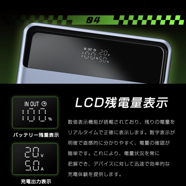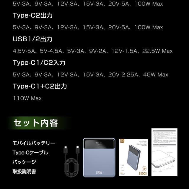 【バッケージ内容】モバイルバッテリー本体/Type-C to Type-C充電ケーブル(PD100W規格)/取扱説明書