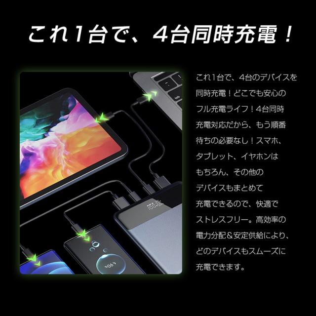 【4台同時充電&30000mAh大容量】