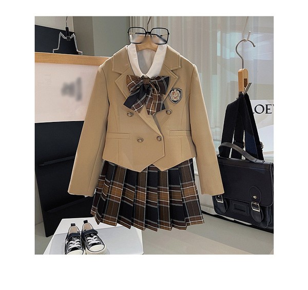 入学式 卒業式 制服 女の子 セット スーツ 長袖 チェック柄 イギリス風 小学生 中学生 高校生 JK ジュニア オシャレ 春 秋 冬 中学 受験 大きいサイズ ゆったりサイズ 卒服 入園祝い ギフト 卒園式 七五三 お受験 発表会 リボン ベージュ 90 100 110 120 130 140 150 160 dg720m4m4x7 dg720m4