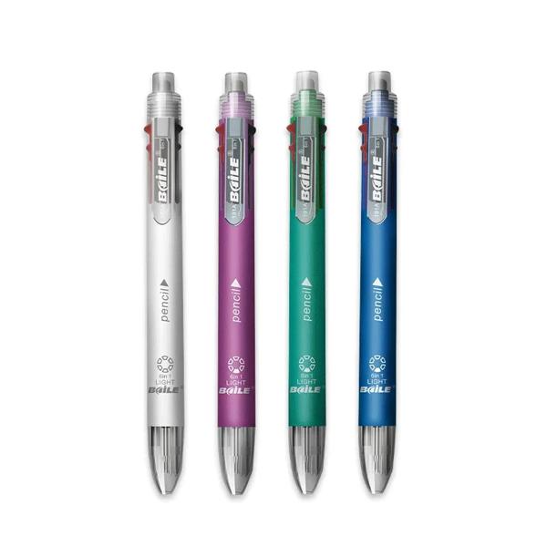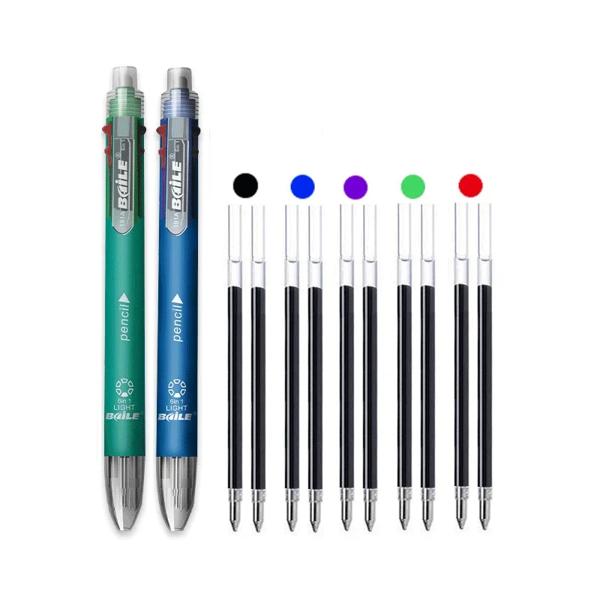 マルチカラー格納式ボールペンセット、シャープペンシル1、文房具、5色、6 in 1