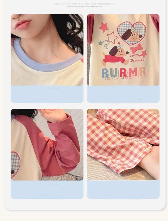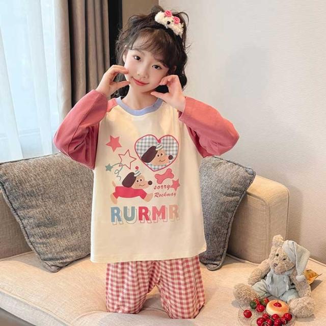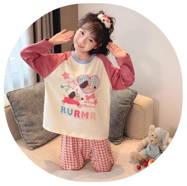 キッズパジャマ パジャマ ルームウェア 上下セット パジャマ アニマル 犬 キッズ ナイトウェア 子供 女の子 春 秋 かわいい おしゃれ ジュニア 長袖 韓国 部屋着 誕生日 プレゼント 暖かい トップス ズボン 部屋着