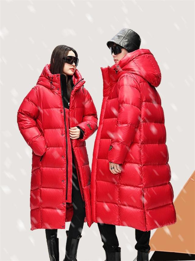 90%ガチョウダウン 極暖 ベンチコート ロング丈 フード付き 男女兼用 ダウンコート ロングコート レディース 厚い 暖かい 真冬 黒 レッド ダウンジャケット 無地 シンプル dv041z7cyh5 dv041z7