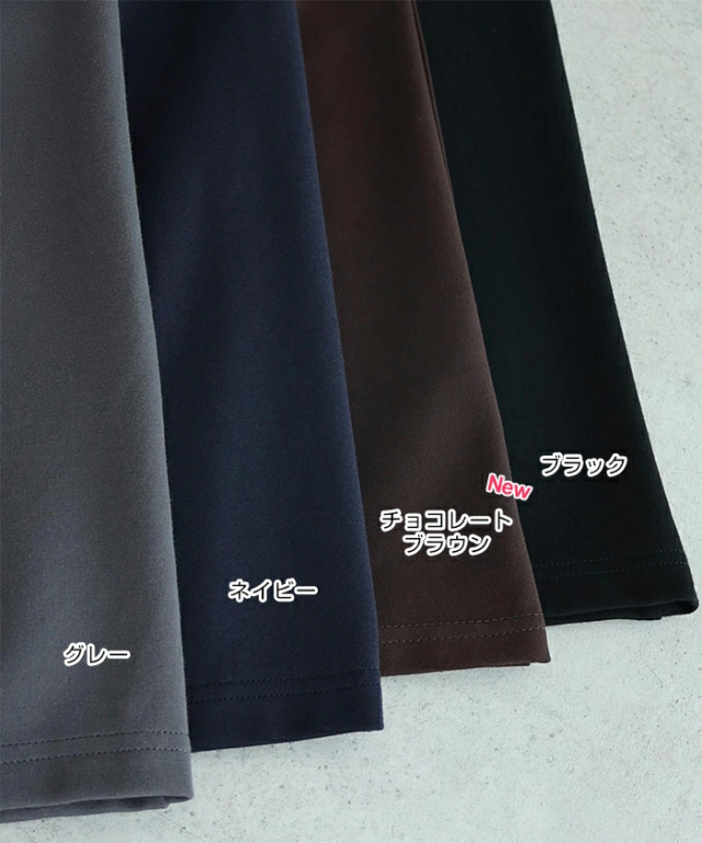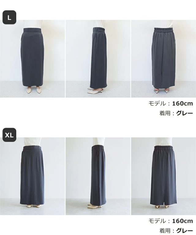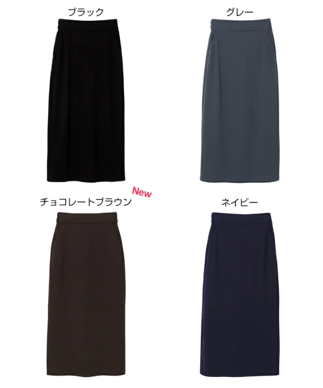 とろみ感のある柔らかなポンチ素材が心地よい、楽ちん&キレイ見えする人気のボトムシリーズに、《タイトスカート》タイプが登場です。