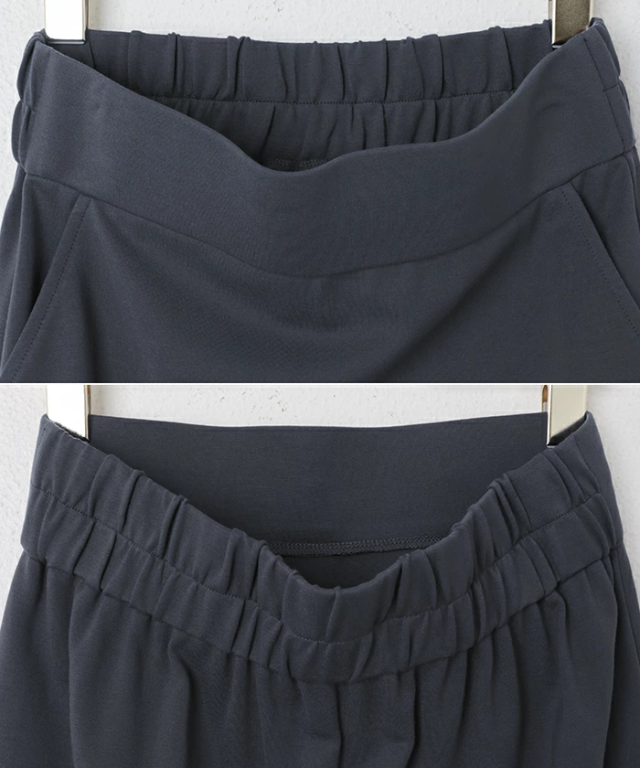 太めのウエストベルトがお腹をしっかりとホールドしてくれるウエストゴム・デザイン。