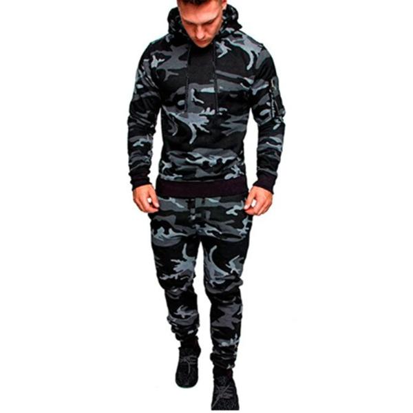 メンズカモフラージュトラックスーツセット、パーカーとパンツ、アウトドアスポーツスーツ、カジュアルジョギングスーツ、スウェットシャツ、2個