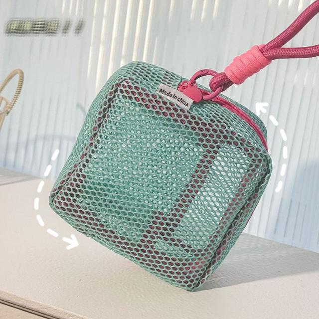 通気性の良いメッシュ素材で、小物やメイク道具の収納に最適です。