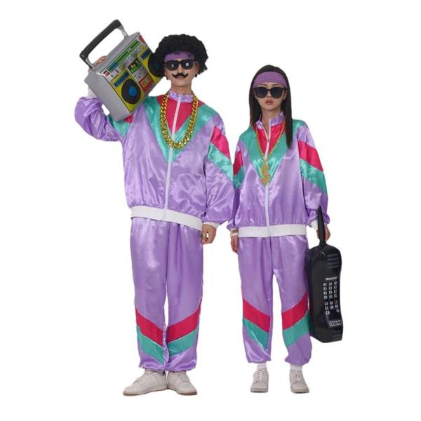 説明: 80年代はカーニバルや悪い味のテーマパーティーのための楽しくて耐久性のあるトレンドです。 カップルがネオンヘッドバンドを一緒に着用し、最もホットな男としてトラックスーツでパーティーに行きました。 このユニセックス80年代のジョギングスーツで、男性と女性の両方がこの快適で派手なトレンドの輝きの復活を確実にすることができます。