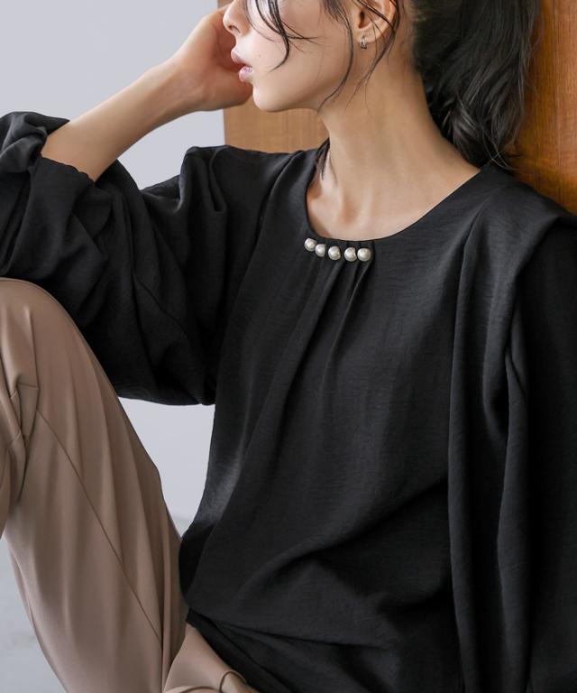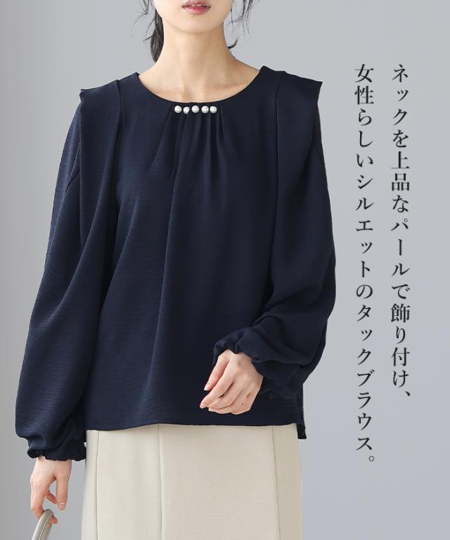 パールタックブラウス レディース【メール便1点まで】[M便 1/1]
