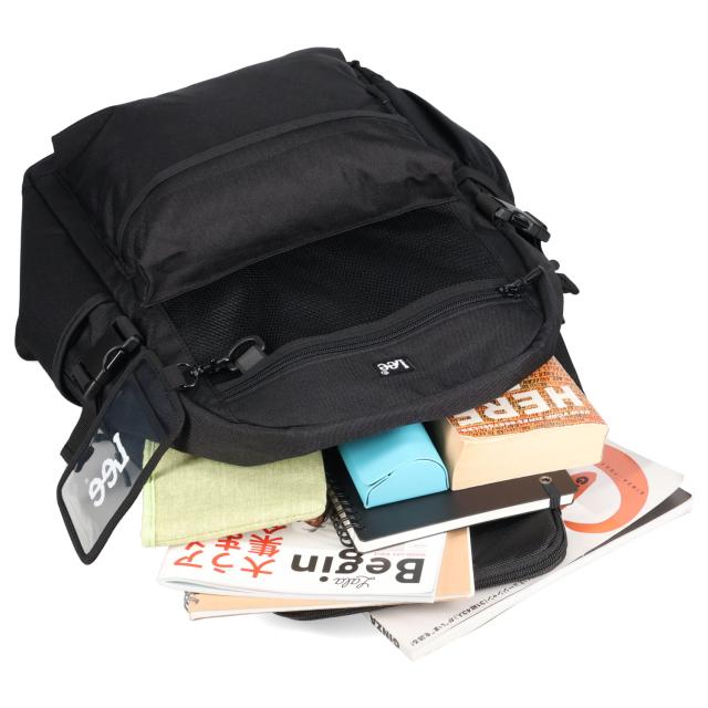 収納力があり、荷物をすっきり整頓ヘビロテ確定の「Lee D.yeah リュック」。たっぷり入って使い勝手抜群な、容量約27L。通勤・通学、タウンユースやレジャーで大活躍。A4対応、メイン&サブの2ルーム仕様。どちらも左右両側から大きく開き、出し入れスムーズ。マチを設け、衣類やポーチなどがひとまとめ。1泊程度の旅行にもおすすめ。クッション入りのポケットを装備。ノートPCを衝撃から優しく守って、持ち運べるのが嬉しい。クッションポケットの他にも、多くのポケットとDカンを配置。小物を探す手間が不要。※フロント、サイドポケット、ショルダーにDカンが装備されています。両サイドに、フィット感を調節できるベルト付き。フォルムもキープ。厚手で太めに設計されたショルダー。体にフィットする形状で、肩が疲れにくい!背面とショルダーは通気性の良いメッシュ仕様。暑い季節の長時間移動も、サラッと快適。ズリ落ちを防ぐチェストベルト。ワンタッチで装着でき、位置は調整可能。ショルダーには、暗闇でヘッドライトの光を反射するリフレクター。夜間や視界の悪い日にも。ICカードなどをINできる、クリアカードケース。