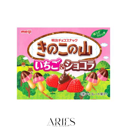 ・きのこの形をパロディー化したロングセラーチョコスナック。チョコレートとクラッカーの絶妙な組み合わせ。 ・きのこの山がカカオが香るチョコレートといちごたっぷりチョコレートの2層タイプで新登場! ・「きのこの山いちご&ショコラ」は、いちごを丸かじりしたような華やかな香りを楽しめます。