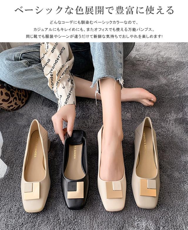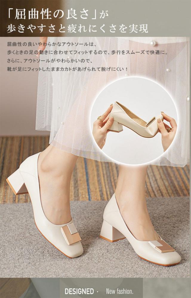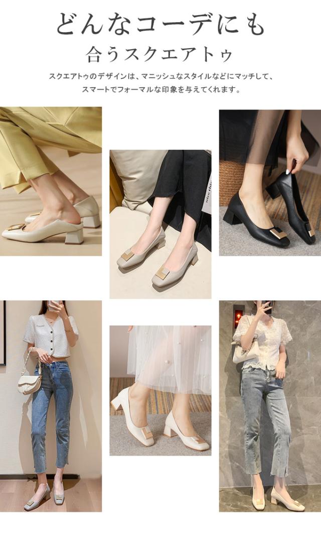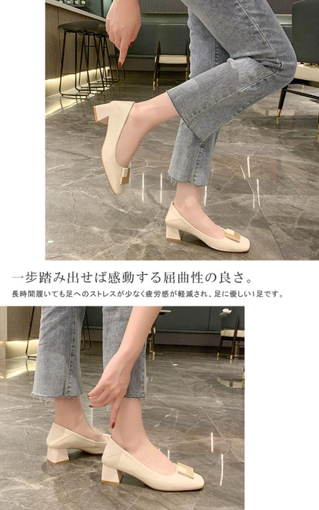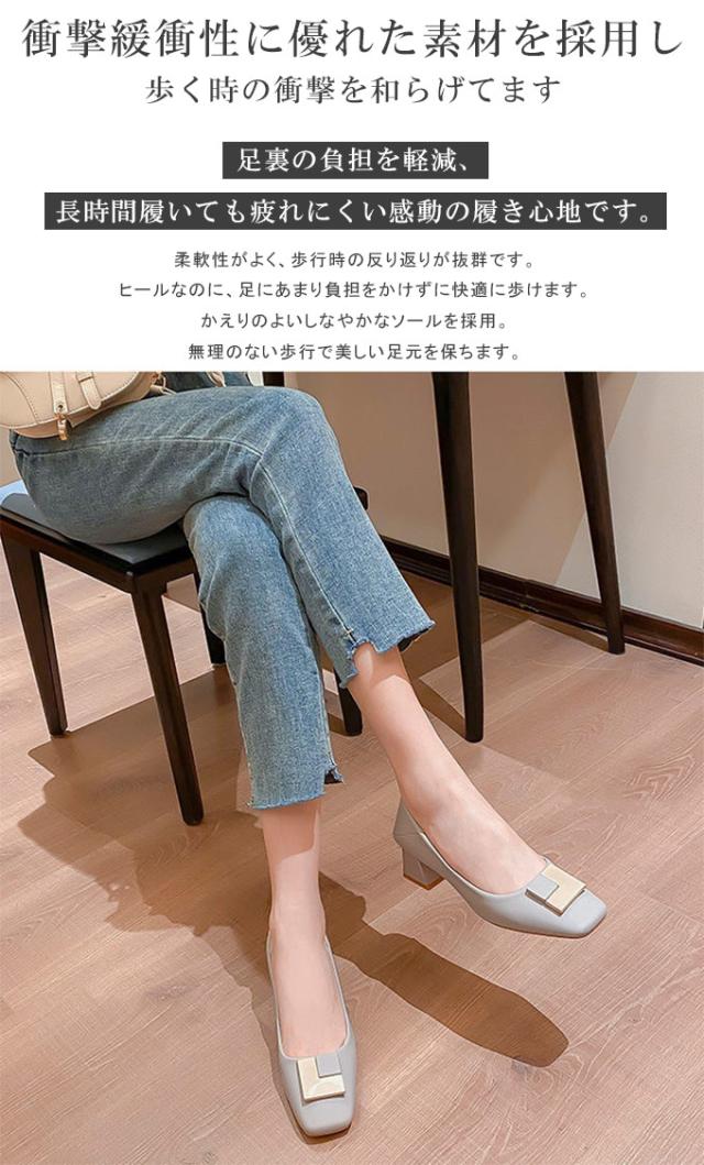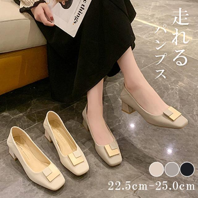 スクエアトゥ パンプス 履きやすい 走れるパンプス 痛くない 5.0センチ ヒール ふとヒール ハイヒール 走れる 脱げない 疲れない コーデ 春 夏 秋 冬