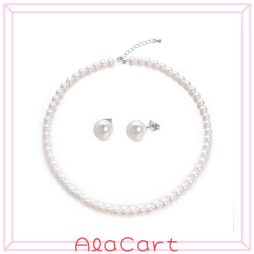 [Aleasha] パール ネックレス ピアス セット 8mm 人工真珠 レディース 冠婚葬祭 ジュエリー 45cm調整可能
