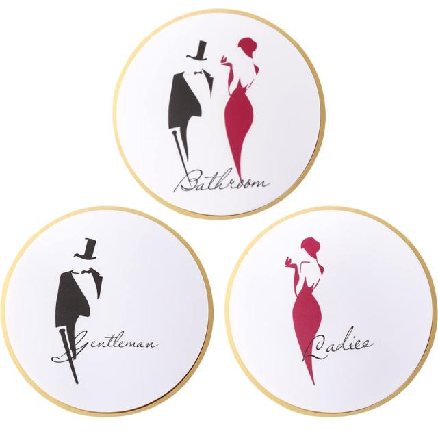 ?スタイル:トイレのサインプレートセット、?素材:厚いアクリル板。?プロセス:UV印刷。?スタイル・サイズ(直径):印刷3枚・15cm