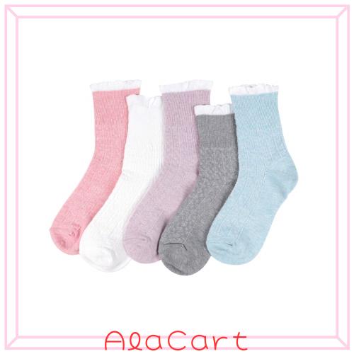 [DAMILY] 靴下 レディース 春秋冬用ソックス 綿 かわいい フリル靴下 レース くつした 5足セット 女性用ソックス 蒸れない ゆったり靴下