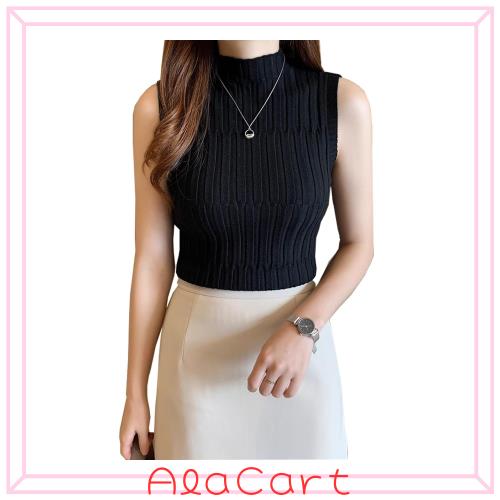 ◆商品名:[優億] ノースリーブ ニット セーター ハイネック レディース インナー トップス リブニット カットソー シンプル タートルネック 着痩せ