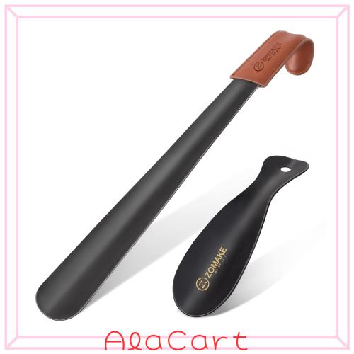 [ZOMAKE] 靴べら 42CM+19CMセット ロング 短い くつべら ステンレス製 シューホーン おしゃれ 高級 PUハンドル 男性、女性、子供、妊娠の