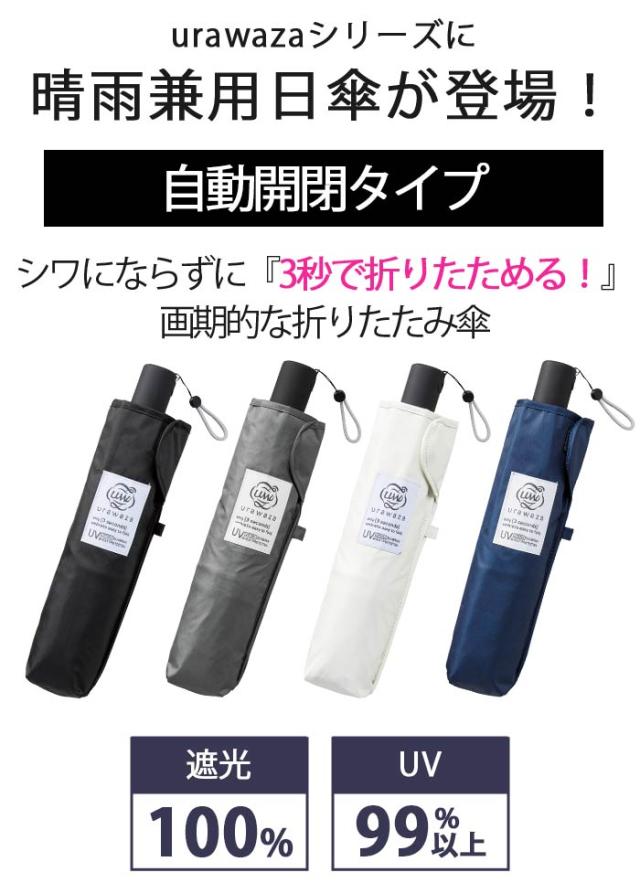 世界初の形態安定技術が採用された「urawaza」より、自動開閉式の晴雨兼用の日傘が登場♪傘の裏側に貼られたPET樹脂素材の特殊シートがガイドの役割を果たし、3秒で折りたためる傘です。