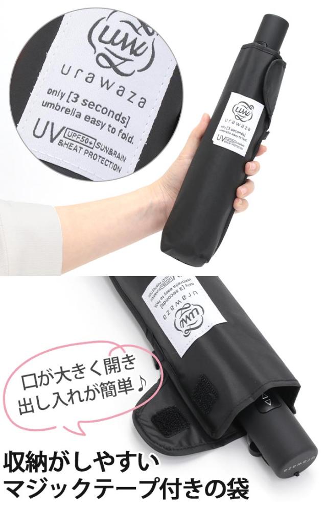 折りたたみ傘 晴雨兼用 urawaza ウラワザ 3秒でたためる傘 スリム レディース 女性 UV 雨傘 撥水 UV 自動開閉傘 エスタ estaa 55cm
